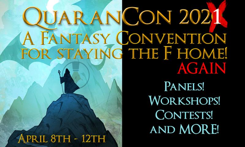 Last year I jumped on the chance to participate in QuaraCon, a pandemic-driven virtual fantasy convention that was the brainchild of author Virginia McClain, and I loved every moment of it. Despite being a very shy, mostly introverted person in most social situations, I do love the stage! I was a drama club kid when I was young, and since then I’ll grab any chance I can get to be the center of attention—so long as there’s a script, or at least a set of talking points. You see, I am terrified of having to go into a party cold and talk to people, because I’m always worried about either being bored or being boring. But give me an outline of what to say, and some expectation of what others will talk about, and I’m in my element!